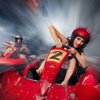 Go-karts may look like toys, but the ones you find on go-kart tracks at amusement parks are actual motor vehicles with gasoline engines. Despite this, the target audience for them is youths in their early to mid-teens. Once you have a driver’s license, driving in circles at a much slower speed than your mom’s Prius can go seems a lot less exciting. Despite this, the makers of go-karts and the operators of go-kart facilities know that the folks behind the wheel are inexperienced drivers. Therefore, even though everyone who is young enough to remember what fun feels like knows the difference between a go-kart and a bumper car, collisions are a routine occurrence on go-kart tracks.